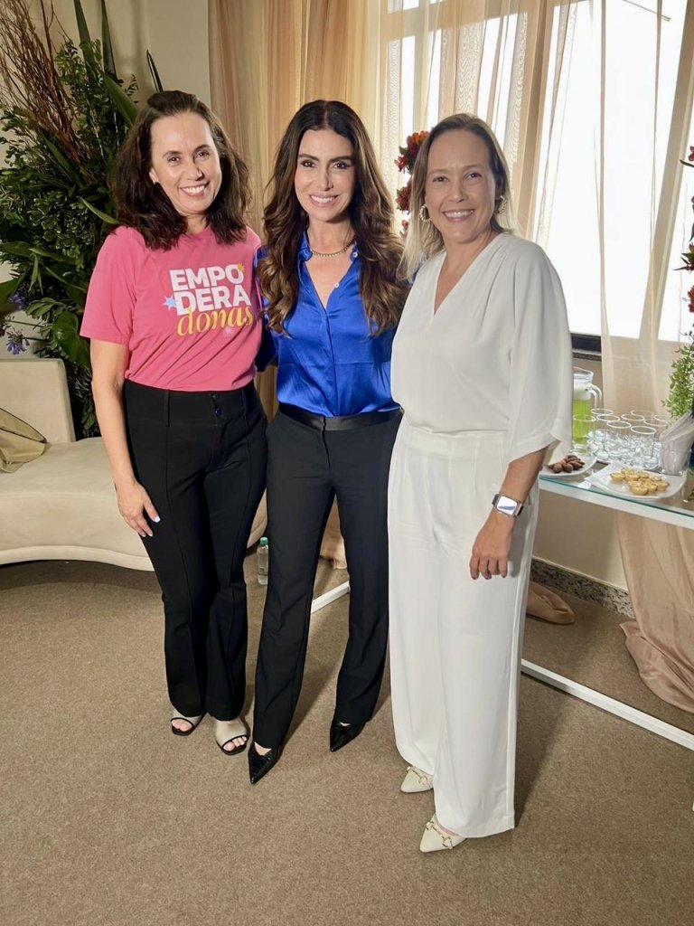 Na foto, Míriam de Magdala e Letícia Pedruzzi com Giovanna Antonelli, uma das palestrantes do evento